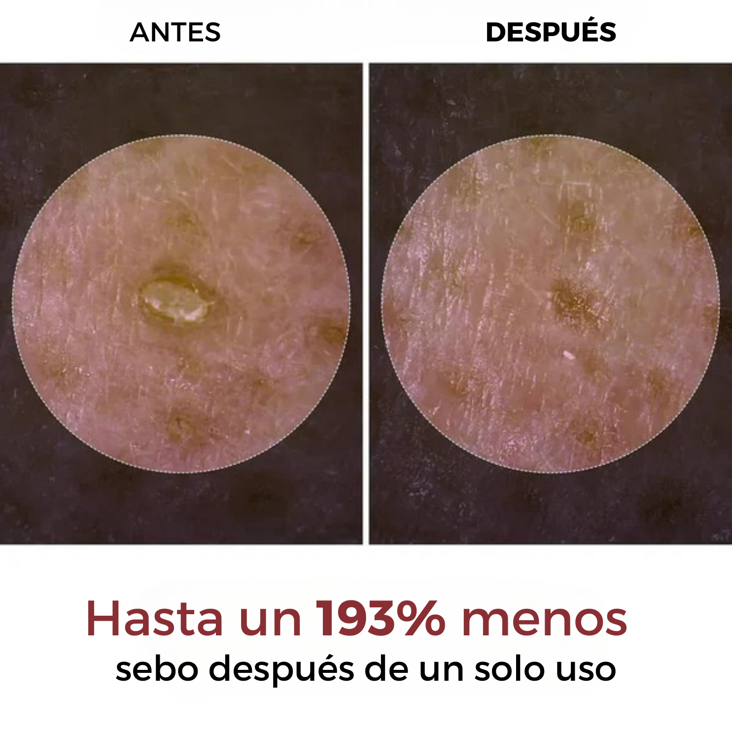 Reduce el exceso de grasa y minimiza la apariencia de los poros, dejando un acabado fresco y limpio.