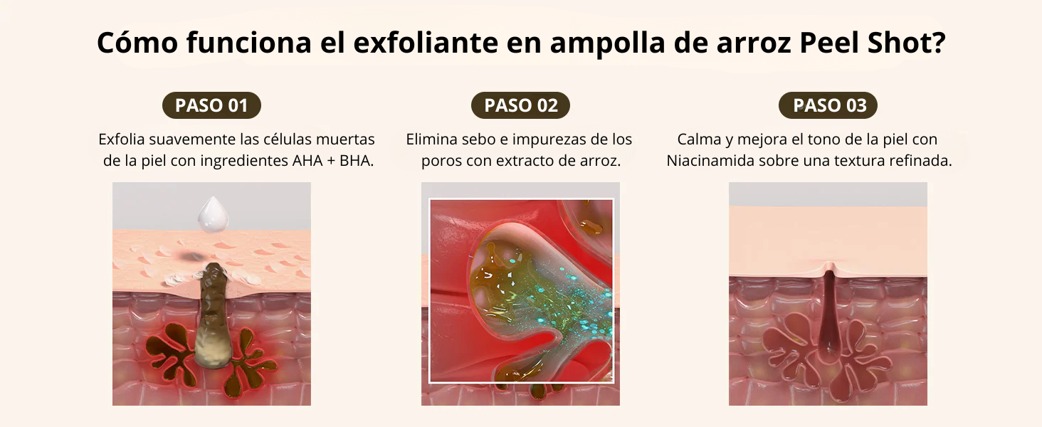Mejoras visibles después de solo una aplicación de Peel Shot Glow Rice Ampoule.